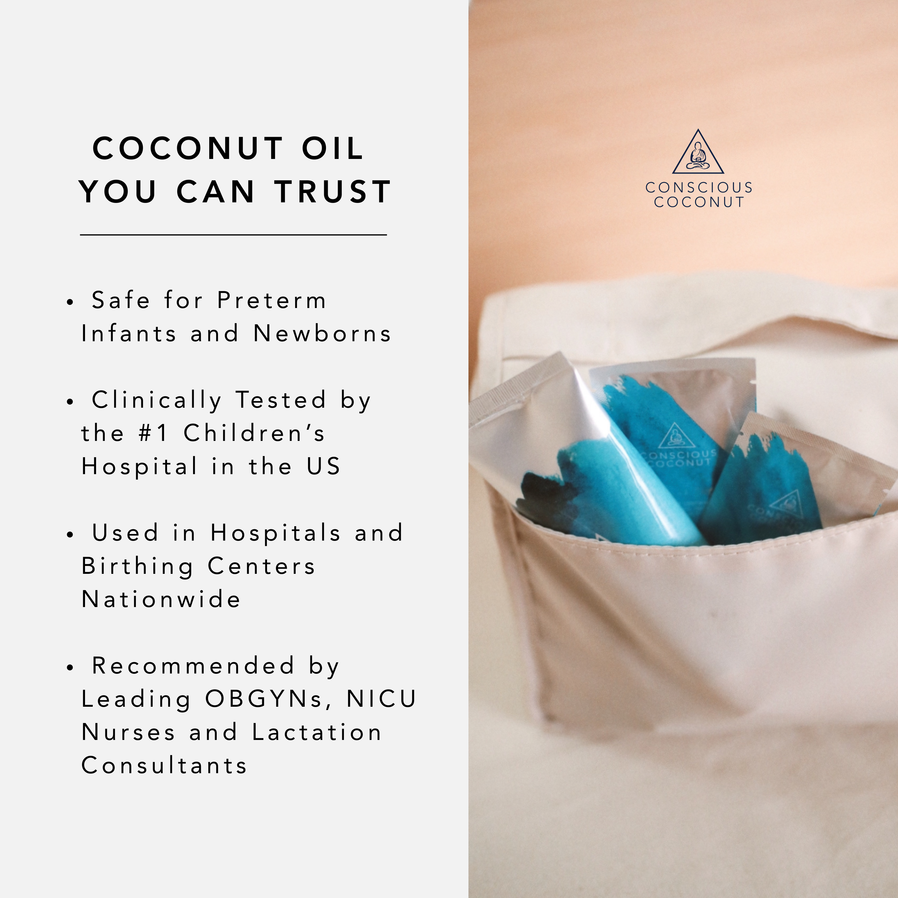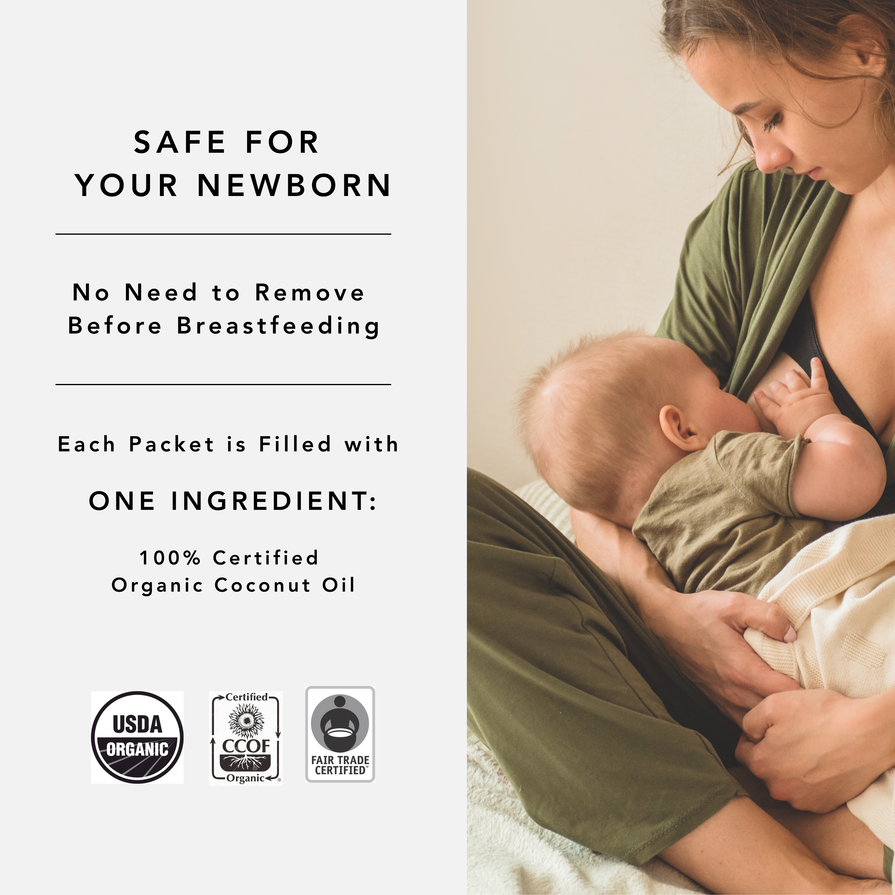 I love coconut oil! My lactation nurse at Sutter gave me two packets for my cracked nipples which I was so thankful for. Like that these are organic and safe for the baby