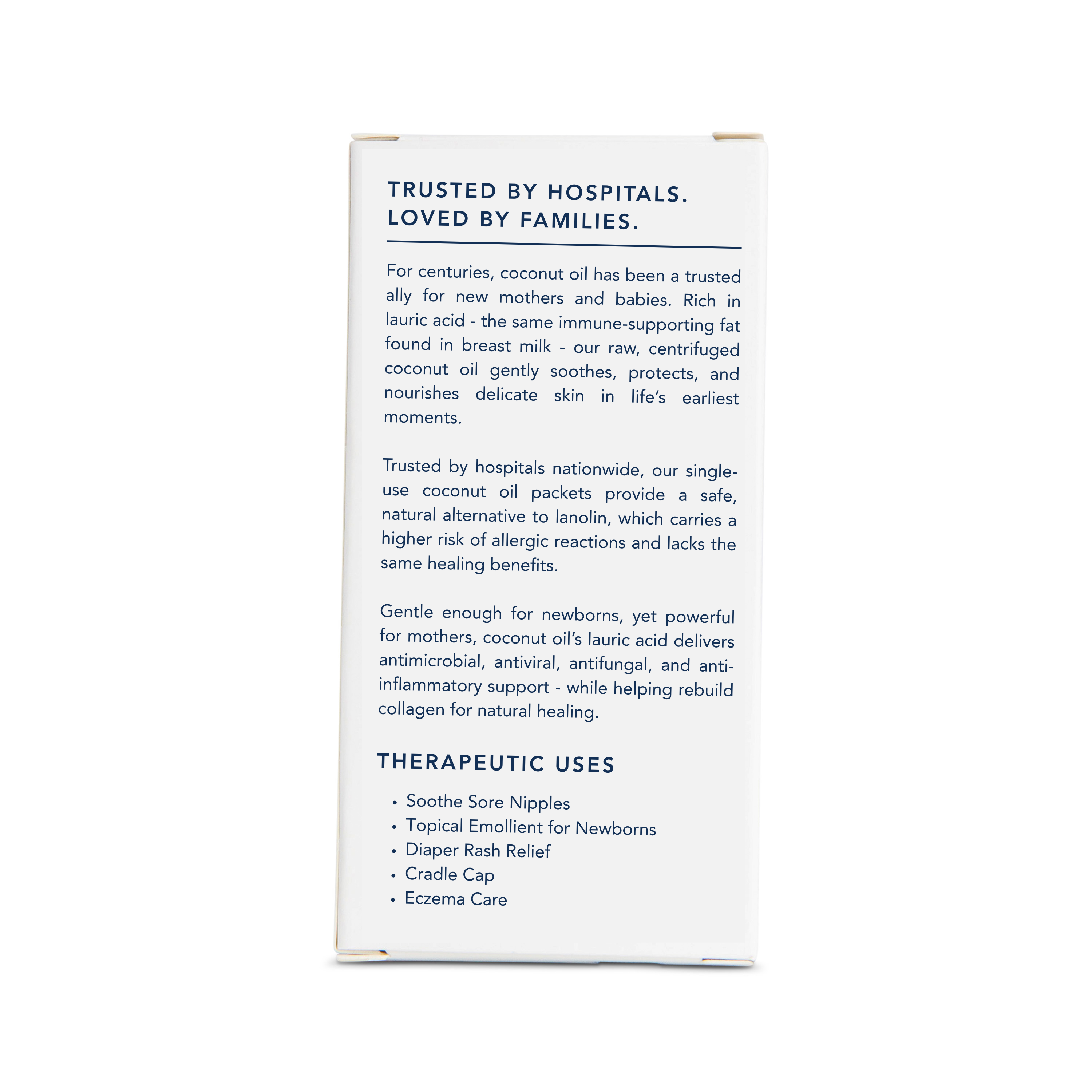 Had my daughter a month ago and I love these coconut oil packets! They gave one to me in the hospital for nursing which was soothing on my nipples and I liked that I didn’t need to clean it off. I was happy to see a box to buy and now use it for diaper rashes too.